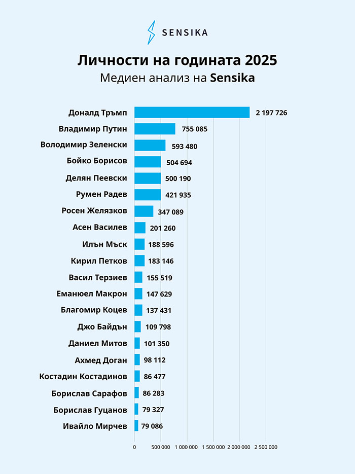 9 милиона публикации в над 9 хиляди информационни онлайн източника на български език за периода 1 януари - 31 декември 2025 г. са проверени в рамките на мащабния медиен анализ на системата за глобален медиен мониторинг и анализи Sensika.