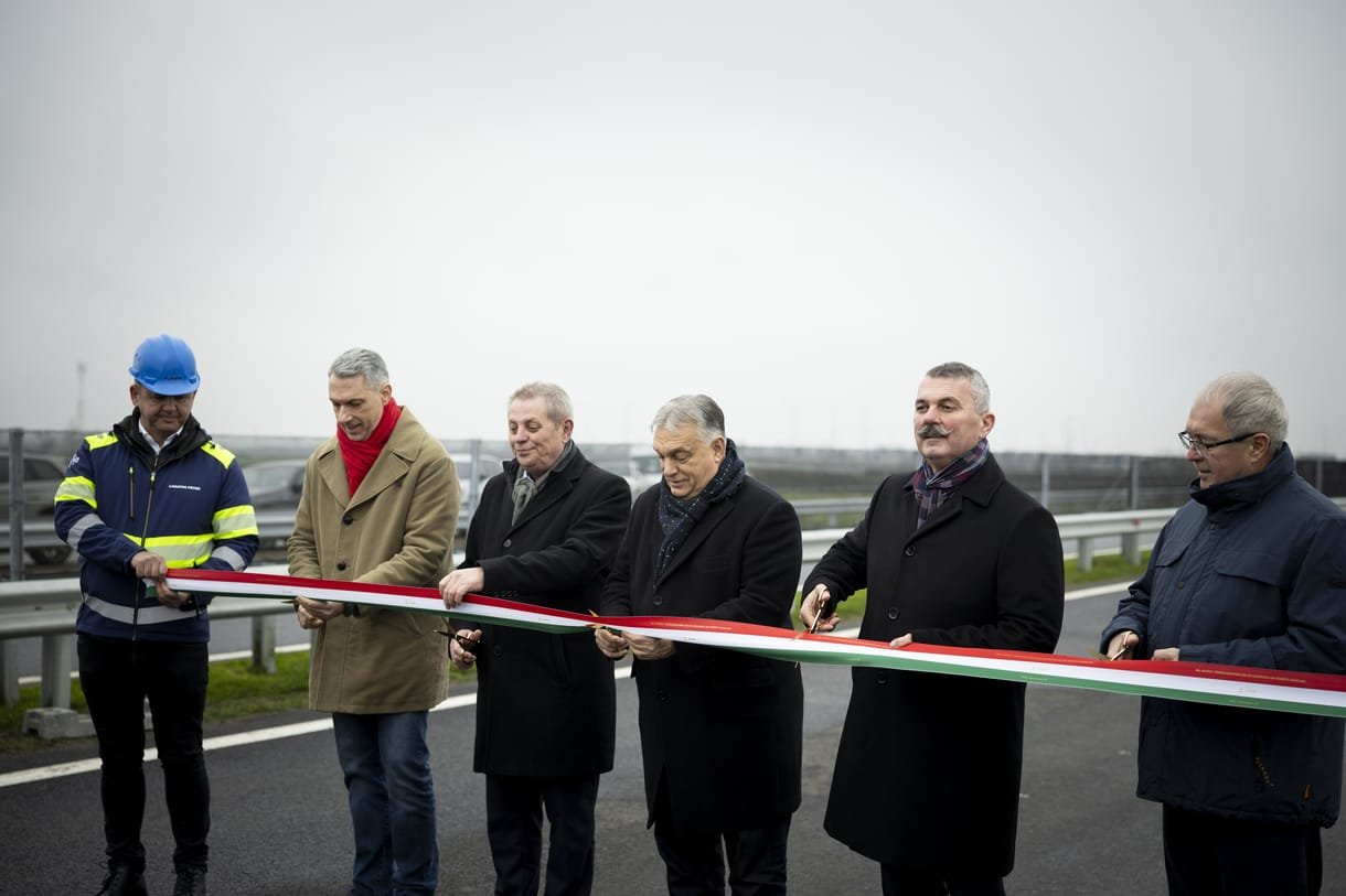 Унгарският премиер Виктор Орбан реже лентата на нов участък от магистралата М4 в края на 2025 г. Сн.HVG